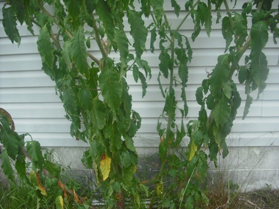 I took this close up so you can see the 'stain' spreading along the veins in the leaves. This doesn't show how the plants are dying internally as they process the rain....